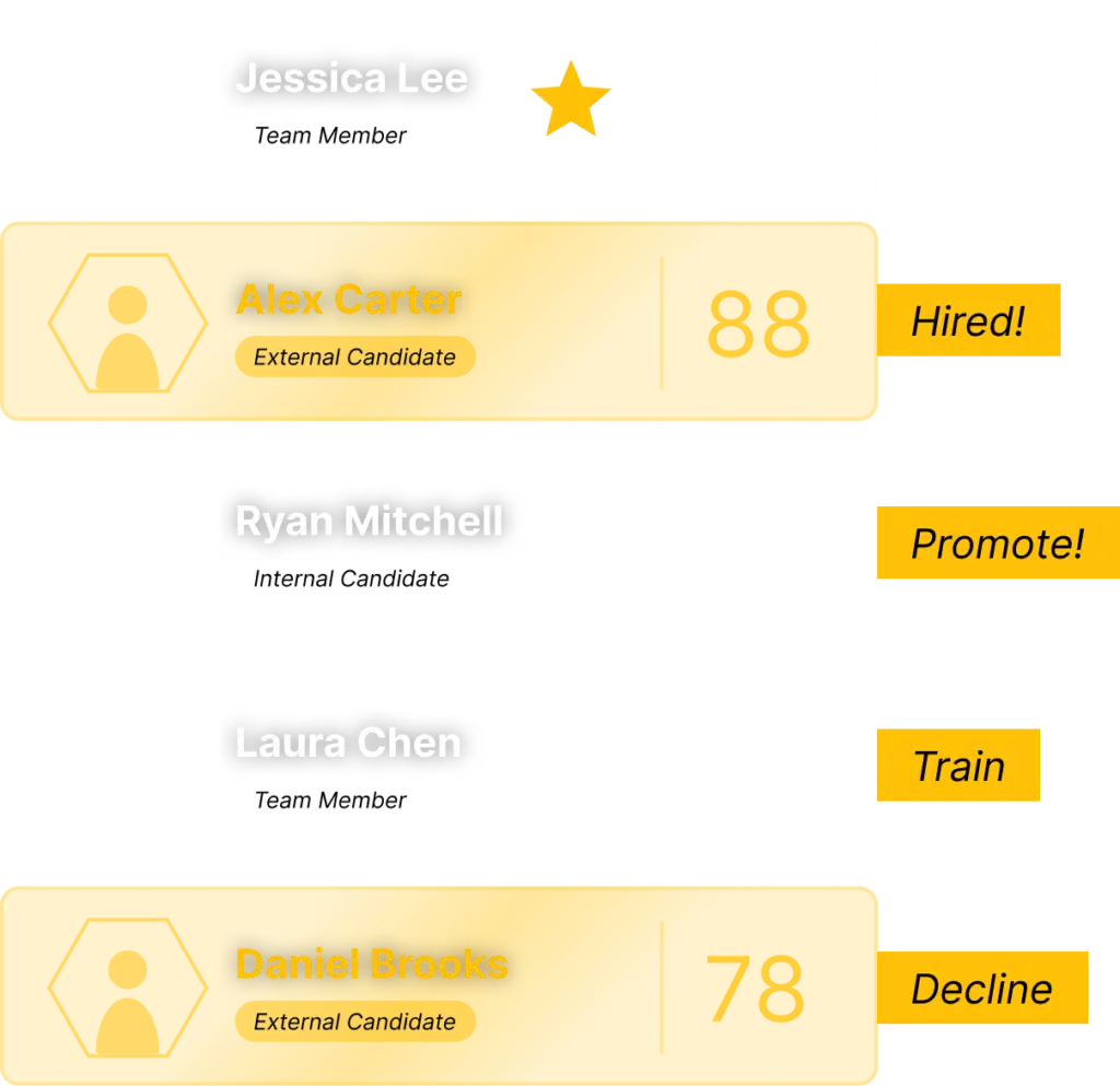 Workerbee turns those examples into a clear, usable definition of “good”- and applies it across your team and your candidates. In most cases, this surfaces people you didn’t expect and challenges assumptions about who your top performers are.